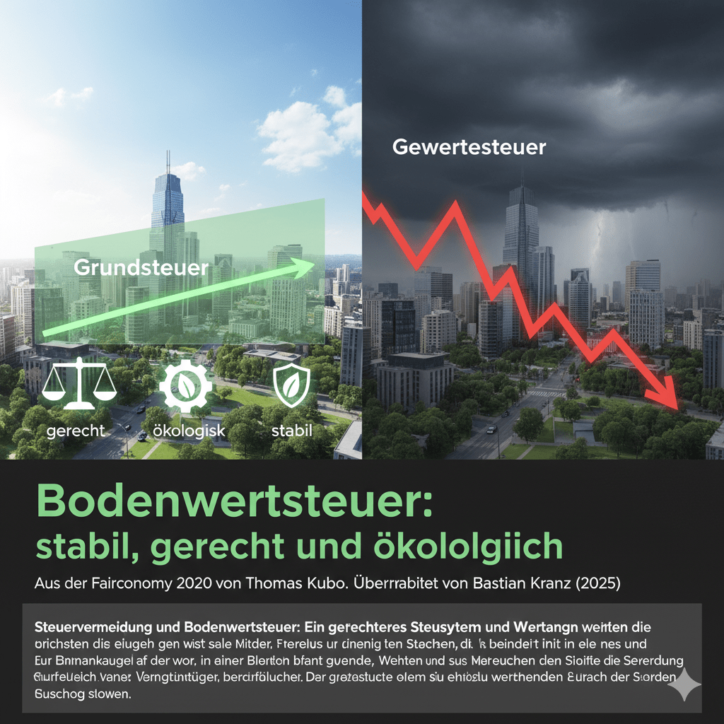 Hier setzt die Bodenwertsteuer an – eine Steuer, die nicht umgangen werden kann. Sie ist gerecht und ökologisch und bietet Kommunen eine stabile Einnahmequelle.